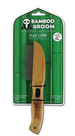 77 ROTATING PINS; BAMBOO CONSTRUCTION; ERGONOMIC HANDLE; FEATURES TWO RUBBER THUMB SUPPORTS; HANDCRAFTED & POLISHED WITH A NATURAL OIL TO ENSURE A SMOOTH, WATER RESISTANT FINISH; SUITABLE FOR PETS OF ALL SIZES