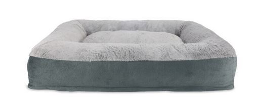 ; Accent piping along edge; Memory foam filled - foam made in USA, free of harmful BPAs and mercury; Non skid bottom; Rectangle shape, ideal for dogs who curl up as well as lay flat; Removable stuffers for easy washing; Suitable for pets up to 75 lbs; Tailored walls to retain bed shape; Textured micro suede wall and back print sherpa plush cushion; Zipper protected by fabric cover