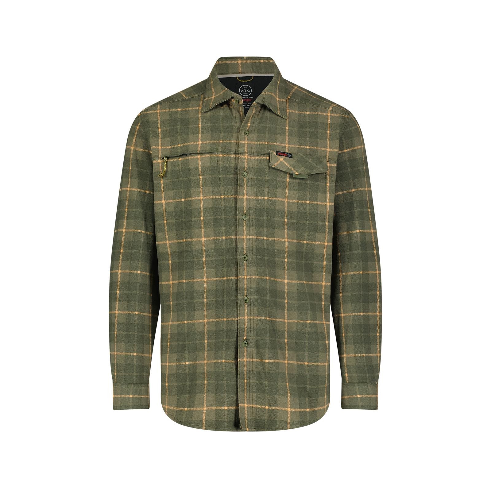 Whether you're exploring a new trail or busy setting up camp, the ATG by Wrangler men's campsite plaid shirt has you covered. This long-sleeve shirt is crafted from a comfortable blend of performance fabrics, with just the right amount of stretch to keep you flexible on the fly. It's also finished with UPF 30 to shield you from the sun and moisture-wicking technology to help you beat the elements at their own game. You'll have plenty of space to store your essentials between the left chest flap pocket and the right zip chest pocket. This classic plaid looks great with cargos.Specifications
