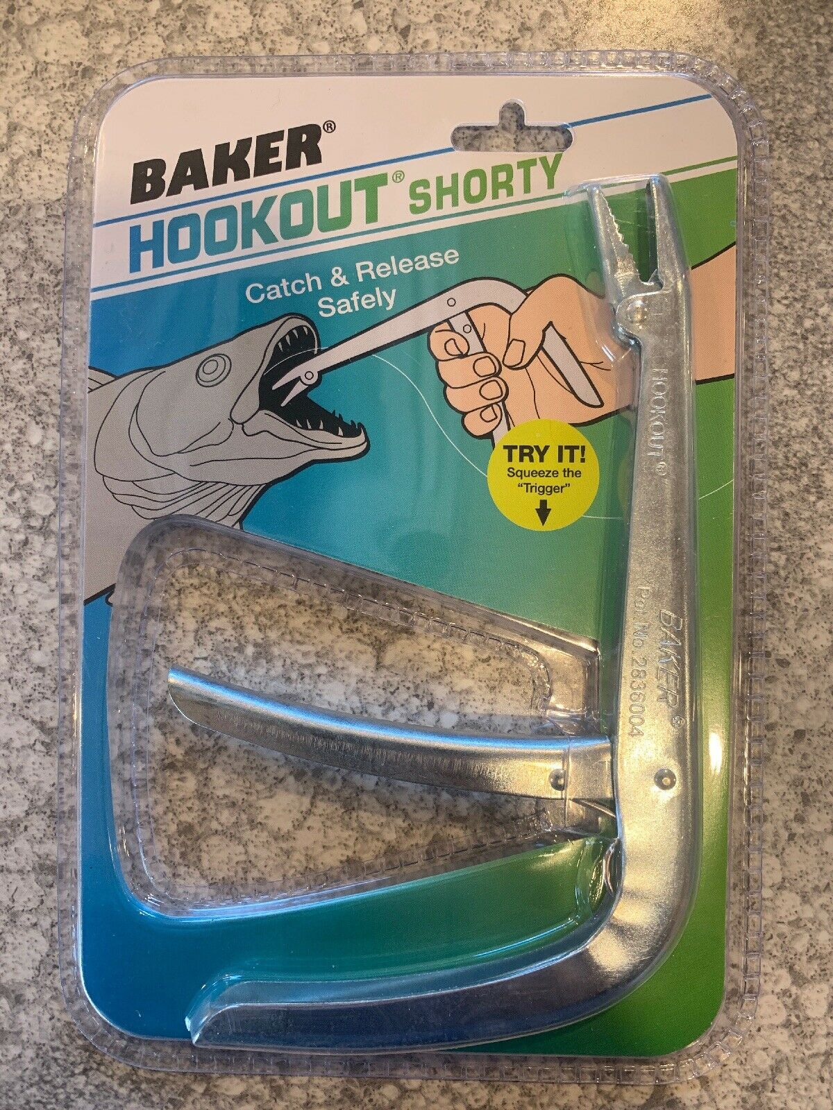 Baker H6S Hookout safely removes hooks, artificial lures and delicate flies with its powerful, spring-operated, non-slip jaws. A right-angle design also gives you a clear view as well as leverage for removing deeply swallowed hooks. At 6.5" long, this tool is made of stainless steel to assure rust resistance for years to come.Specifications