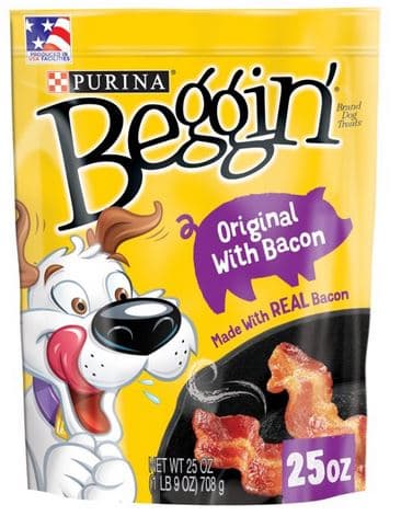 Watch as your pooch does the dance of joy when you give him Purina Beggin' Strips Original With Bacon Adult Dog Treats. The irresistible Beggin' jerky dog treats start with real meat as the first ingredient, and offer the tantalizing taste of real bacon that's sure to make all your pal's doggie dreams come true. Watch him go hog wild at the first sniff of bacony goodness, and feel good about giving him soft and chewy dog treats made with no artificial flavors or FD and C colors. Toss him one of these Beggin' Strips soft chew dog treats as a snack, or tear the soft treats for dogs into smaller pieces for the ultimate reward. With the look and taste of real bacon, these flavored soft dog treats get tails wagging and tongues lolling just like Hamlet, Beggin's bacon-loving mascot. Listen for the sound of running paws as the aroma of these Purina Beggin' Strips bacon flavor dog jerky treats calls out to your buddy with the promise of tail-wagging flavor he just can't resist.Specifications