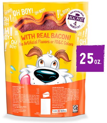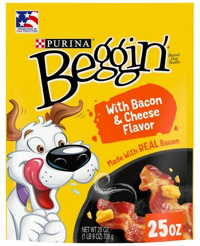 Get a little cheesy with your pooch when you hand over Purina Beggin' Strips Real Meat Bacon & Cheese Flavors Dog Training Treats. Every meaty, cheesy mouthful of yum is made with real bacon and the taste of cheese for a true snack sensation. Real meat is the #1 ingredient in these bacon flavored dog treats. Plus, the tender texture is easy to chew. Toss your furry friend a whole dog strip as an irresistible snack between meals. Or tear each soft dog treat into smaller pieces for a reward so yummy, it's worth behaving for. With the aroma and shape of real bacon, these Beggin' bacon flavor strips with cheese convince dogs they're getting bacon fried up just for them. Because these bacon and cheese flavor dog snacks contain no artificial flavors or FD&C colors, your pup gets the bacon taste he loves along with the wholesome ingredients you want for him.Specifications