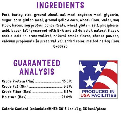 Beggin' is proud to support the Purple Leash Project and their efforts to convert more domestic violence shelters into pet-friendly spaces; Beggin' Strips dog soft treats are made with real bacon and no artificial flavors or FD and C colors; Real meat is the first ingredient; These soft and chewy dog treats have an irresistible aroma to get tails wagging