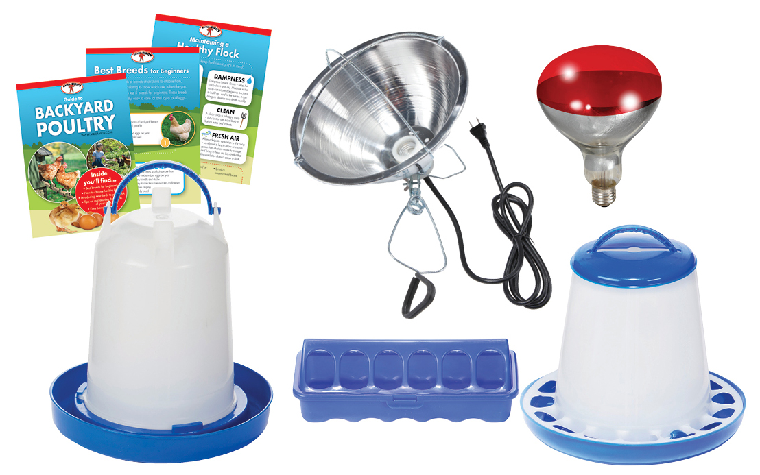 Double Tuf Beginner Poultry Kit contains everything you need to get your chicks started right. Includes feeder, waterer, chick ground feeder, brooder reflector, heat bulb, and 12 page poultry guide booklet.Specifications