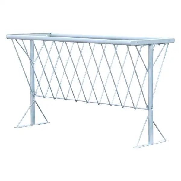 Galvanized Hay Rack allows the feeding of loose hay and grain at the same time. These racks bolt directly to the frame of the galvanized feed bunks and are made from solid 3/8" rod for extra durability. All hay racks come complete with all mounting hardware.Specifications