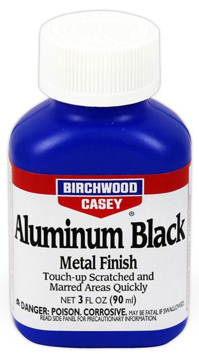 The room temperature chemical used by gunsmiths and industry to blacken aluminum parts. Restores scratched and marred areas quickly. Fast-acting liquid is easy to apply with no dimensional change. Color will vary from deep gray to black depending on alloy. Aluminum Black Metal Finish is also excellent for blackening name plates, plaques, trophies and other engraved items.Specifications