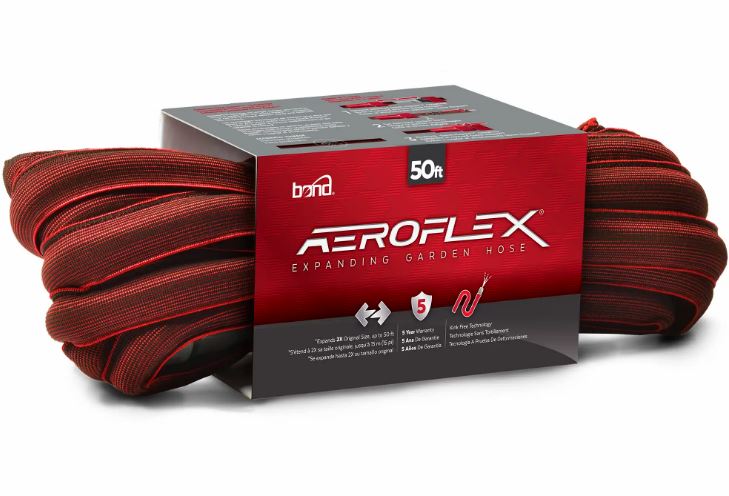It's time to toss out the same old heavy garden hose you've been using and go with something more lightweight flexible and long lasting. The AEROFLEX hose is completely reinforced by water pressure crafting a conveniently compact and kink free expandable garden hose for the best watering experience yet! As the only expandable garden hose built with Kink Free Technology the rubber base layer allows continuous water flow regardless of shape. Protected by an elastic UV resistant outer layer this 2-ply hose is designed to accommodate expansion by 200 percent. With a 300 PSI rating and a diameter of 5/8" hose rupture just isn't an option with the AEROFLEX. It will hold up against twists tangles and frequent use guaranteeing years of service. Easily attach the wrench-free poly couplings and enjoy watering with the AEROFLEX.Specifications