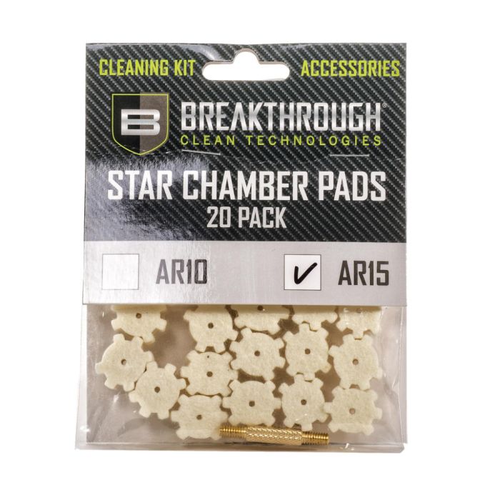 The Breakthrough Clean Premium Chamber Star Pads give you a precise tool to clean the tough to reach AR15 chamber.Specifications