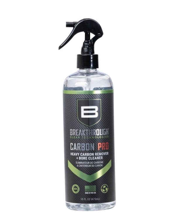 The Breakthrough Clean Carbon Pro is a water-based, ammonia-free, cleaner that removes heavy carbon and lead deposits. Utilizing a proprietary blend of chemical surfactants and detergents, Carbon Pro effectively works to neutralize all corrosive residues preventing damaging rust and corrosion without etching or harming the barrel’s steel surface. With no noxious fumes or hazardous chemicals, Carbo Pro is a safe and effective choice when it comes to removing stubborn carbon & lead build-up and cleaning the bore of your firearm.Specifications