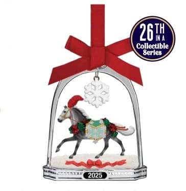 26TH IN A COLLECTIBLE SERIES; A NATURAL ADD-ON TO ANY HOLIDAY HORSE PURCHASE; ATHLETIC SPORT HORSE WITH BEAUTFIUL HELLEBORE BLOOMS DECORATING HIS TACK