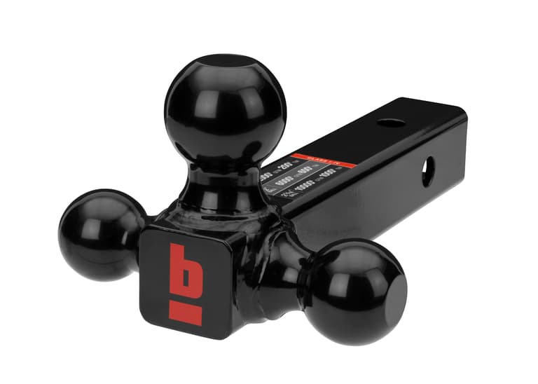 2" shank triple ball mount with 1 7/8", 2" and 2 5/16 black powder coated trailer balls. The balls are welded on and the rated towing capacity is as follows. The 1 7/8" ball rated for up to 2,000 lb . The 2" ball rated for up to 6,000 lb and the 2 5/16" ball rated for up to 10,000 lbSpecifications