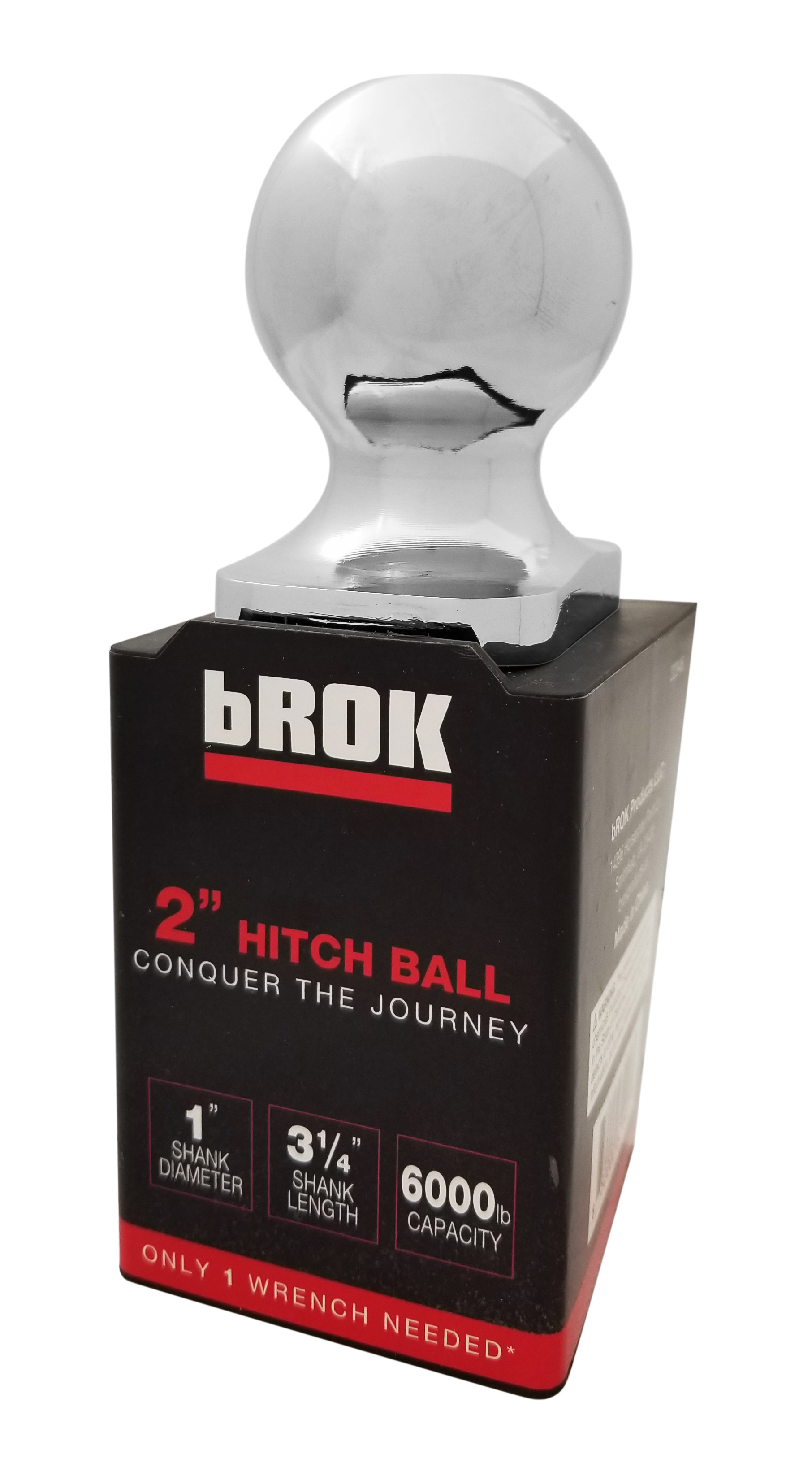 bROK hitch balls are the next evolution in hitch ball design. Created for long life from solid forged steel, these hitch balls provide a convenient one wrench tightening method when used with bROK pinSpecifications