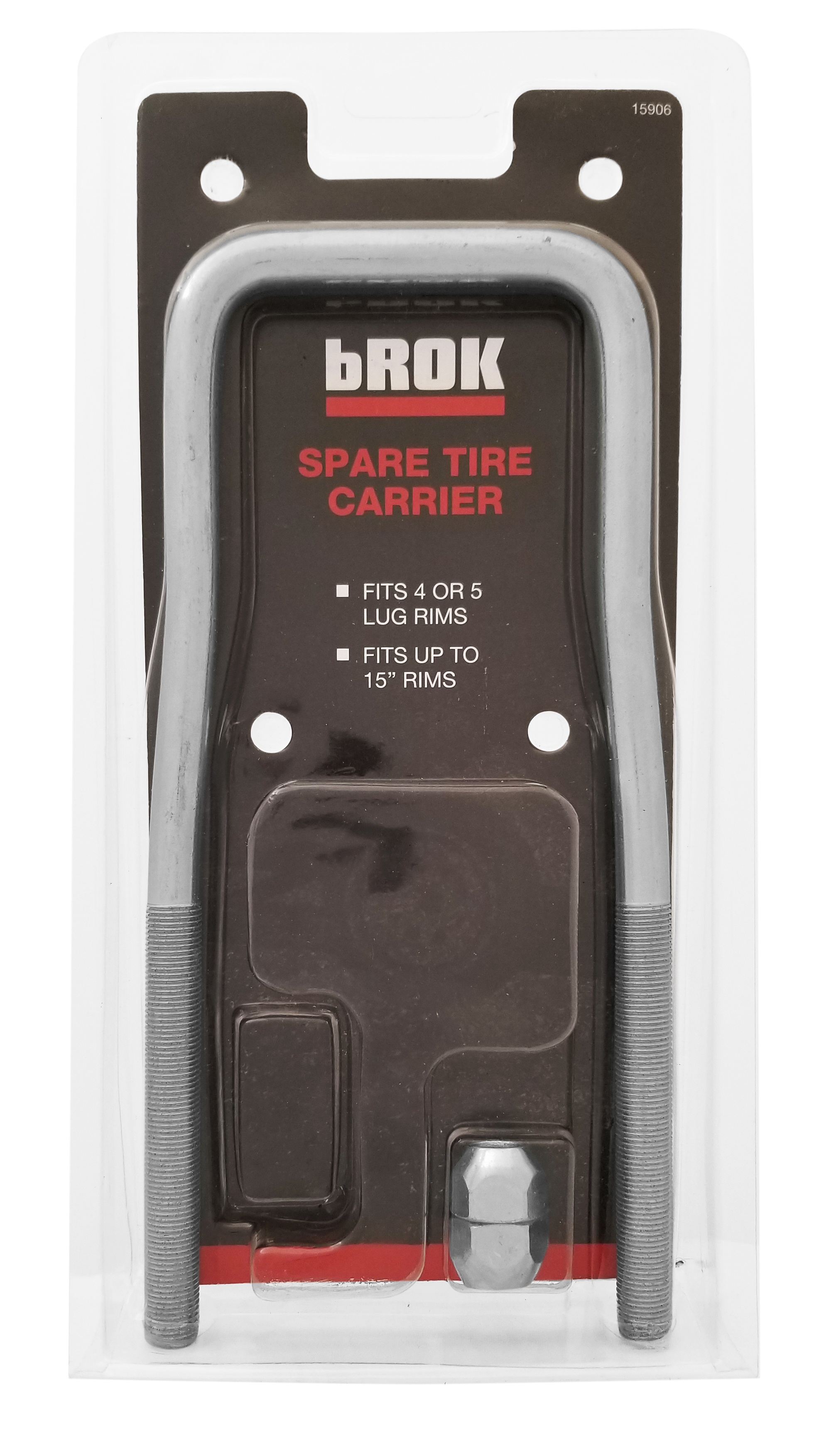 spare tire carrier for 3 " wide trailer frame fits 4 or 5 lug wheels up to 15 inch rim; The bROK universal spare tire carrier fits spare tires from 8"to 15" wheels. Easy to install, Corrosian resistant Zinc plated finish