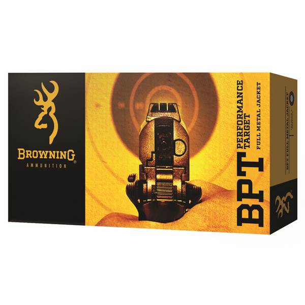Browning BPT Performance Target Handgun Ammunition is a premium training product that can be used to hone your handgun skills. The matched weight and velocity to self-defense ammunition gives you the same feel and results as if you were in a real-life situation. With BPT ammo, you can gain confidence at the range, transferring to confidence in personal defense situations. The black nickel shellcase plating improves reliability and feeding. Box of 50 rounds.Specifications
