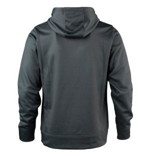 HOOD PULL CORDS; KANGAROO-STYLE PASS THROUGH HAND POCKET; LARGE EMBROIDERED BUCK MARK ON FRONT; POLYESTER FLEECE FABRIC; SELF-FABRIC CUFFS AND HEM; TRICOT LINED, THREE-PIECE HOOD