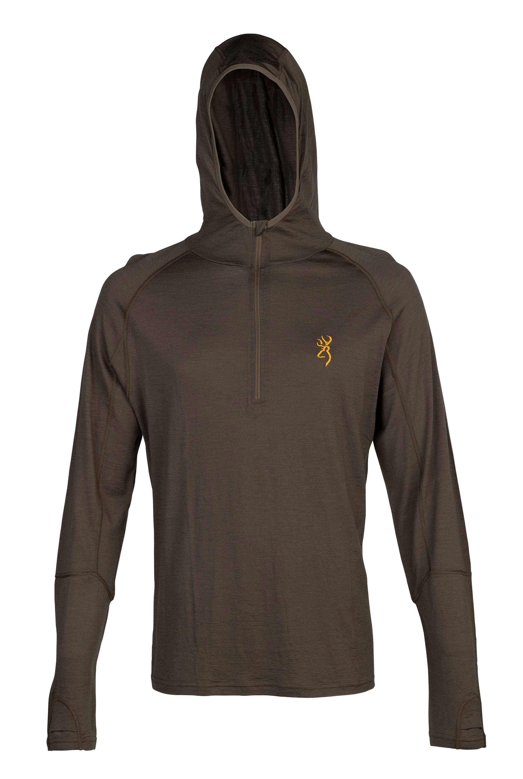 The Merino Wool Hooded shirt is the ideal foundation for warmth. Itch-free, 100% Merino wool is warm, wicking, dries fast and is odor resistant, making perfect to wear next to the skin as a base layer. The 1/4 length front zipper makes it easy to cool off under exertion. Conversely, the fitted hood traps in heat to help keep you warm on the coldest days.Specifications