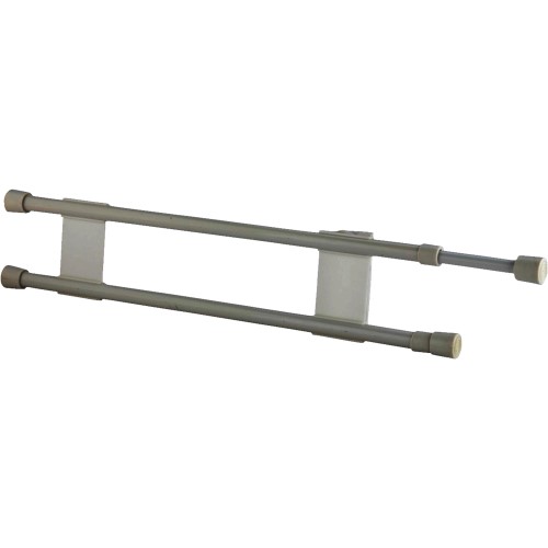 Double bar for extra protection; Keep order in the RV refrigerator and cupboards during travel; Refrigerator bars extend from 16 inch to 28 inch; Spring loaded bars keep items in place; White.