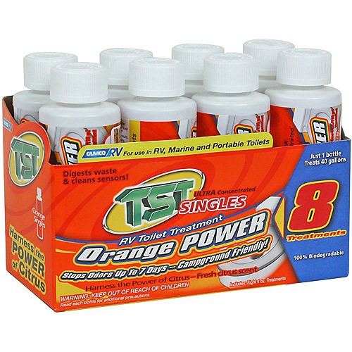 Camco TST RV toilet treatment / drop-ins helps to break down the vest and tissue. Special fragrance has been added to help control odor. It also contains coconut oil to help keep the sensor lubricated. This product does not contain formaldehyde, and is safe for non-staining and septic tanks. Our one step, no measuring solution requires any mixing or preparation. Only 4 ounces will treat water up to 40 gallons.Specifications