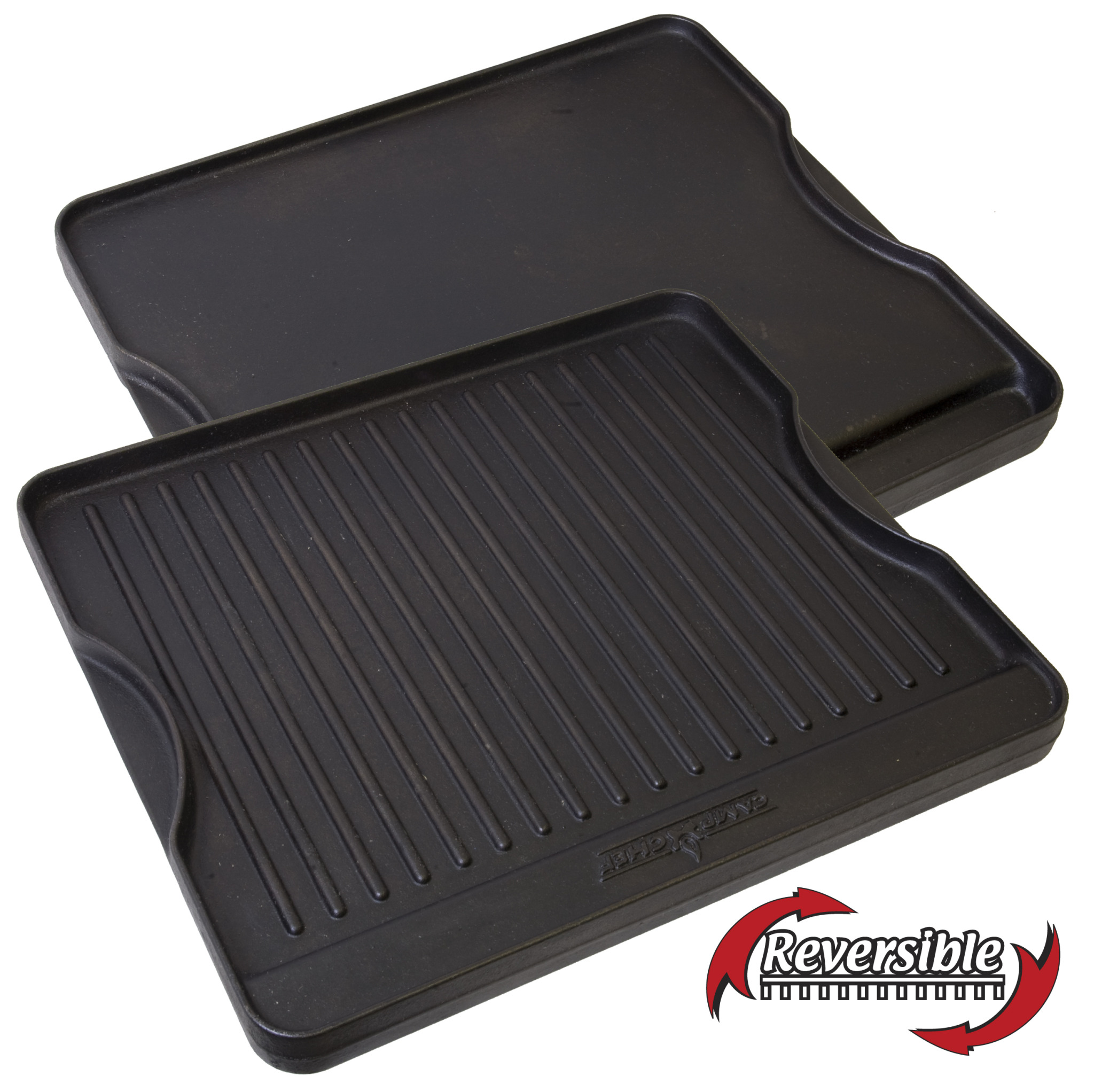 Cook bacon and eggs for breakfast and grilled burgers for lunch. Versatility is important when it comes to outdoor cooking and the Reversible Cast Iron Grill and Griddle can do it all. This cast iron grill/griddle heats evenly and holds heat well, making it easy to cook your food to perfection. Pre-seasoned with Camp Chef’s True Seasoned Finish, this grill/griddle has a natural cooking surface that is ready to use out of the box.Specifications