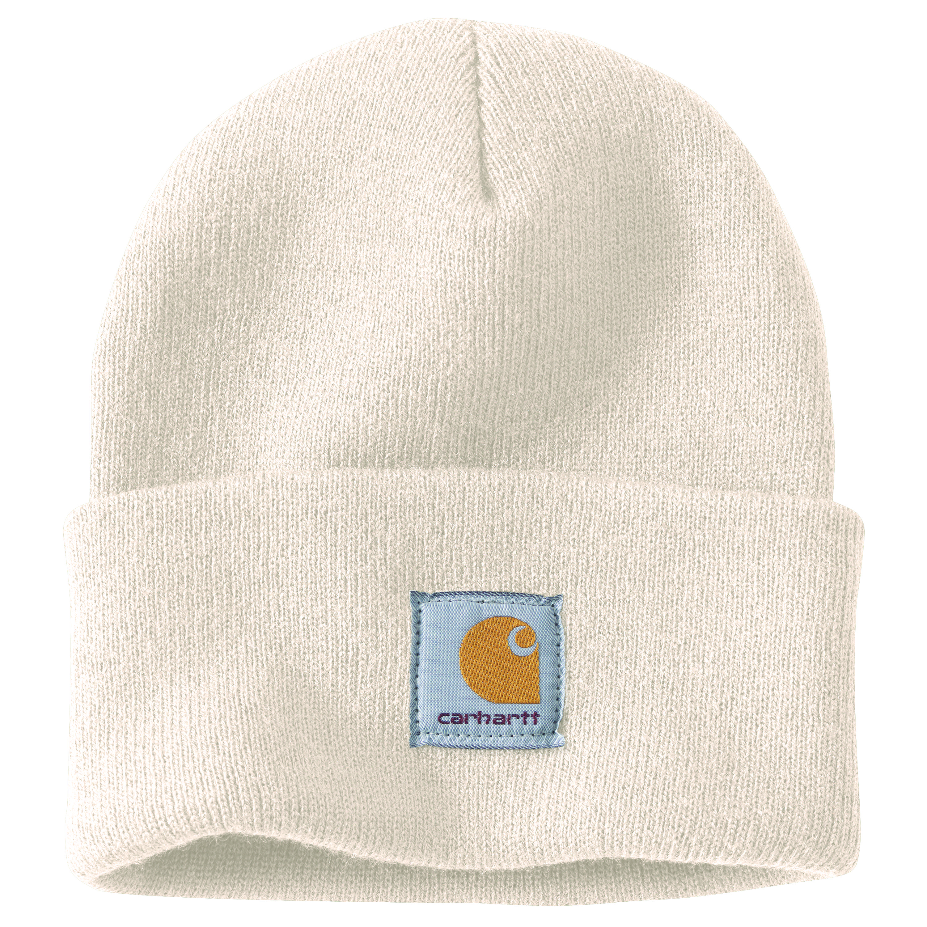 Carhartt label sewn on front; CUFFED BRIM; MADE IN USA; RIB-KNIT FABRIC