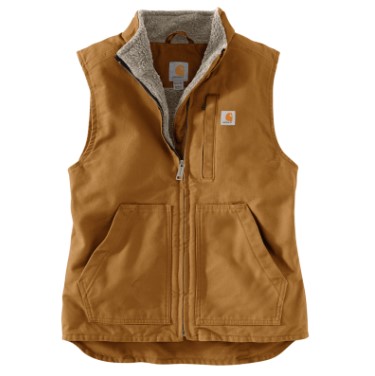 This women's sherpa lined vest is a versatile layer built to provide extra warmth right where it matters most. It's made of Carhartt's signature heavyweight cotton duck with a sandstone finish that sets it apart, and has a warm Sherpa lining to take on chilly weather.Specifications