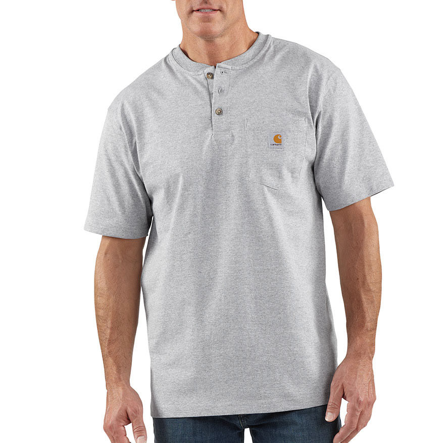 Men's heavyweight cotton henley t-shirt. Since 1889, Carhartt has made durable workwear you can count on as you tackle the toughest jobs. This men's short-sleeve henley t-shirt is made of heavyweight cotton jersey and cut generously for a roomy fit.Specifications