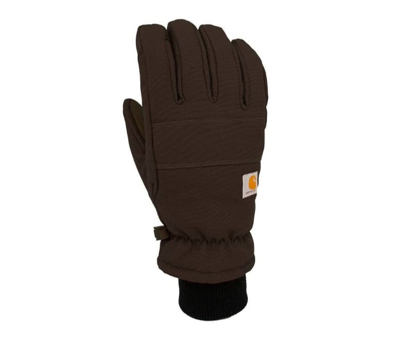 Durable cotton duck with synthetic leather palm, fingers, and thumb; Secure elastic at wrist, soft rib-knit cuff for comfort and fit, touch screen capable; Ultra-soft insulation, Fast Dry technology lining wicks away sweat
