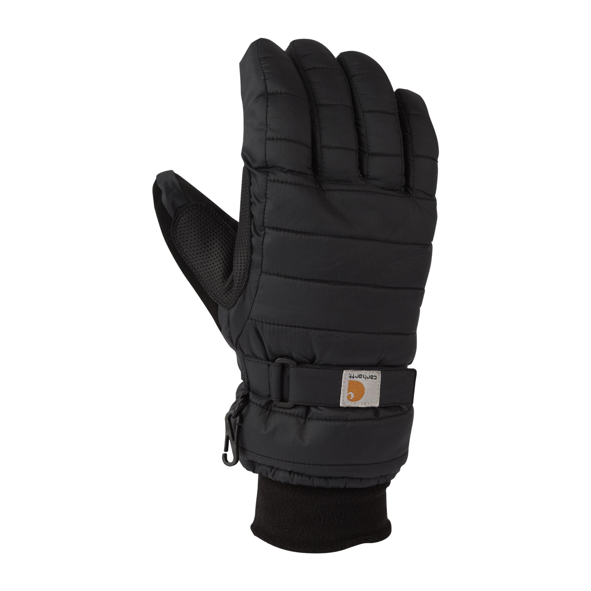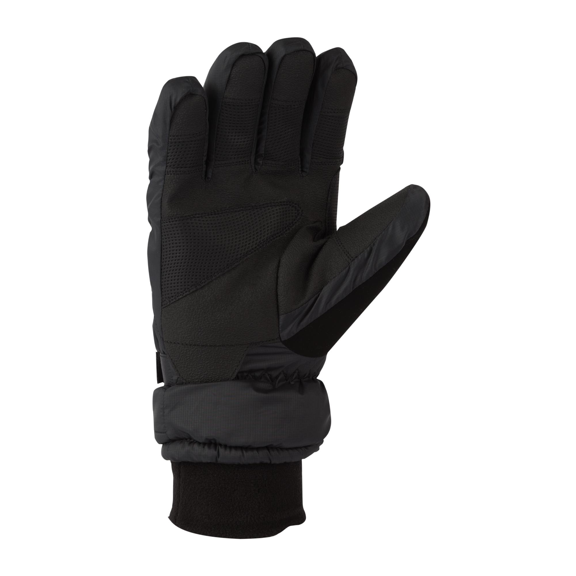ELASTIC FLEECE CUFF WITH ADJUSTABLE HOOK-AND-LOOP CLOSURE; FASTDRAY TECHNOLOGY LINING WICKS AWAY SWEAT; NOSE WIPE; POLYFIL INSULATION FOR WARMTH; REINFORCED SYNTHETIC PALM; RIPSTOP TAFFETA WITH QUILTED STITCHING; WATERPROOF INSERT