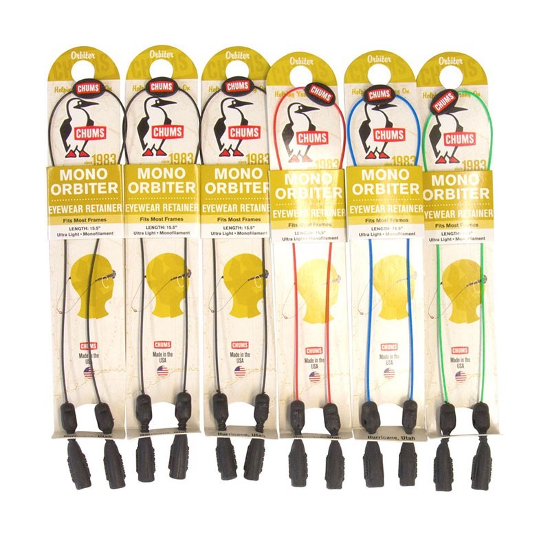 COLORS/DESIGN VARY - PLEASE SEE STORE TO SELECT A PARTICULAR COLOR. All of your fish stories become immediately believable when you are wearing the Mono Orbiter. Made from high tenacity monofilament, the Mono Orbiter is strong, sleek and lightweight. Let this pair of Orbiters help keep your glasses on your head and your hands on the reel.Specifications