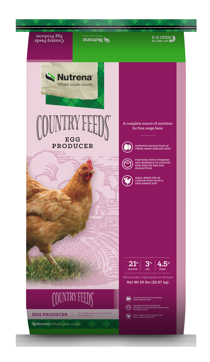 Nutrena Country Feeds Egg Producer is a source of complete nutrition for free range hens.Specifications