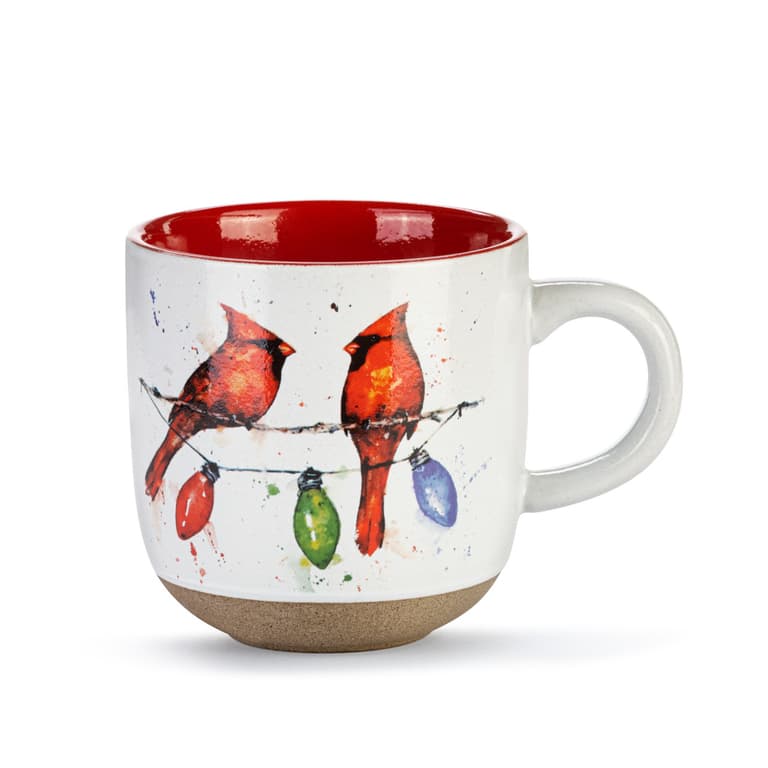 When it comes to painting, Dean Crouser aims to express the relatable beauty of whatever catches his eye in nature. Dean's holiday collection depicts nature through peaceful winter scenes - an artful curation of accessories including the Cardinals on Lightstring Mug and Card Set.Specifications