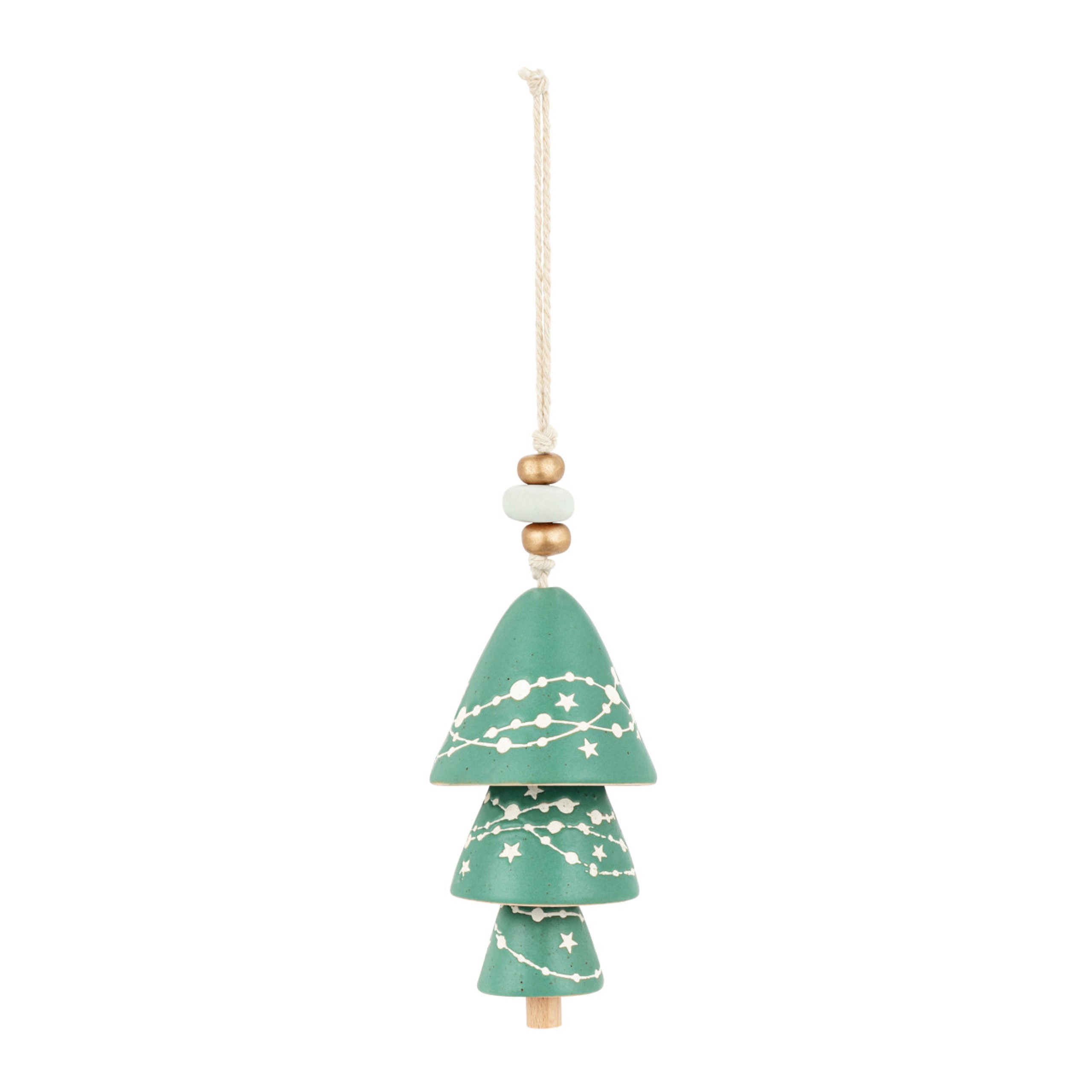 DECORATIVE TIERED CHRSTIMAS TREE DESIGN; STONEWARE INSPIRED HOLIDAY BELL