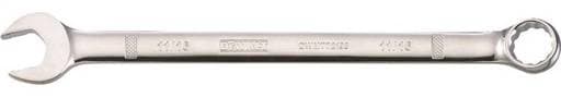 15 deg offset box end for knuckle clearance; Long panel design gives more torque during use; Sizes stamped twice on both sides of wrench handle for easy size identification; Stamped hashmark pattern on wrench handle helps provide added grip points; Stamped markings provide permanent visibility and helps prevent wear over time.
