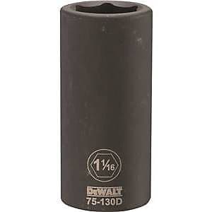 DWMT75130OSP SAE Deep Impact Socket, 3/4" Drive, 1-1/16" Thinner than wrench sockets for tough to access areas Large laser etched markings - easily identifiable Provides the impact Driver user with a socket solution Designed for use in both corded & cordless Impact drivers and wrenches.Specifications
