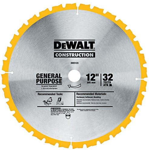 32 tooth circular saw blade for general purpose with carbide construction grade 1 inch round arbor 12 inch diameter Thin kerf saw blades are for use with miter saw and table saws. Used for all-purpose cutting in natural wood plywood and wood composites.Specifications