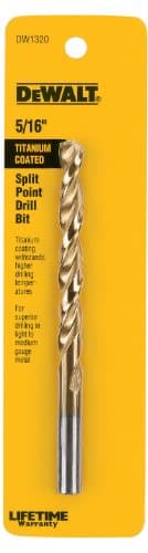 Coated in heavy-duty titanium for long life and equipped with a 135-degree speed tip that helps to reduce walking, DEWALT Titanium Drill Bits are ideal for drilling light-gauge metals. A parabolic flute design improves chip ejection while drilling.Specifications