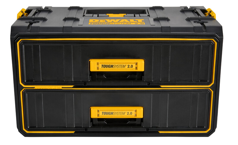 2-drawer storage with ball-bearing metal slides for smooth drawer movement; Auto-connect side latches for stacking; Built-in carrying handles; Compatible with all Toughsystem 2.0 products.