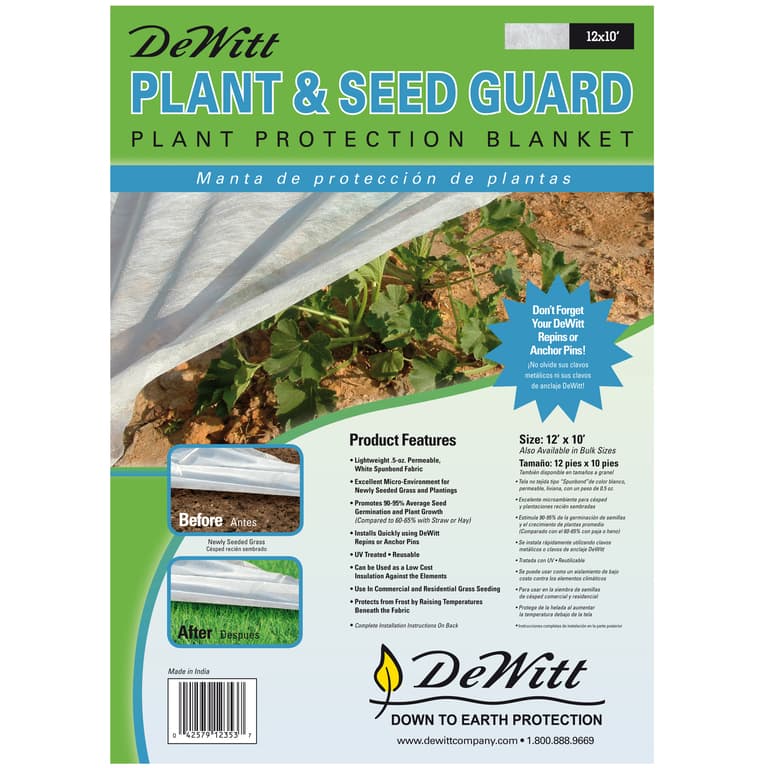 DeWitt Plant & Seed Guard is a lightweight, .5 oz., white, spun-bonded fabric for use in grass seeding on both commercial and residential sites. It creates an excellent micro-environment for seed germination and seedling growth. This fabric provides a 90-95% average seed germination compared to 60-65% with straw or hay and can be used as low-cost insulation against the elements.Specifications