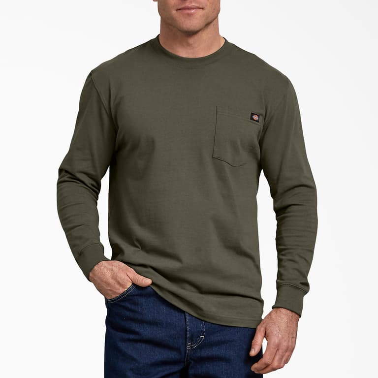 This Men's Heavyweight Long Sleeve Pocket T-Shirt is one of our bestselling crew neck styles. Whether you're wearing it as a shirt on its own or as an undershirt with extra layers on top, the roomy design, tagless label, and heavyweight cotton jersey construction with taped seams will ensure a comfortable fit during a busy workdayor weekend day. The long tail keeps you covered in the back so you can wear it on or off the job, while the chest pocket with a pencil divider lets you store essential work accessories.Specifications