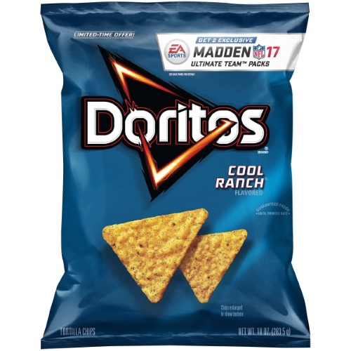 Cool Ranch has been one of the most popular Doritos flavors for decades, and the iconic blue bag is a staple snack featured in chip fans’ pantries around the world. The new Doritos Cool Ranch is now packed with even more Cool Ranch flavor that is sure to get fans falling even deeper in love with this classic flavor.Specifications