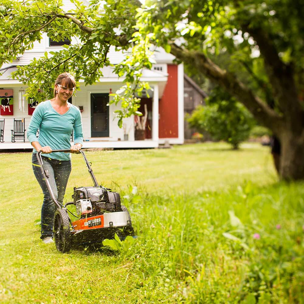 Our Premier model offers vastly more power than any handheld trimmer and will power through any trimming task and handle light to moderate mowing jobs with ease. At just 57 lbs it is light enough to maneuver in tight quarters, rolling easily on big 14" resin wheels. The Premier features a 22" cut and has five adjustable height settings, from 1.5 to 3.5 inches.Specifications