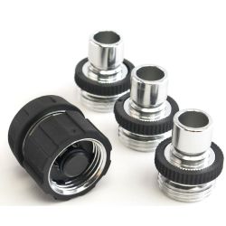 Aluminum Quick Disconnect Hose Adapter Set by Dramm. The Aluminum Quick Disconnect eliminates the hassle of threaded connections between the hose and accessories. Made with lightweight aluminum construction for ease of use. Can use with any garden hose thread accessory. The Aluminum Quick Disconnect Set includes: 1 Hose and 3 tool adaptors.Specifications