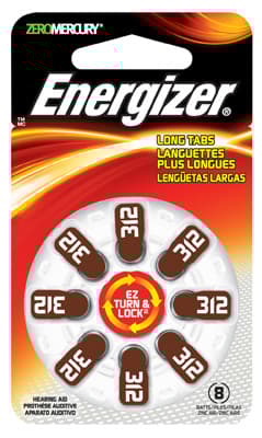 Energizer Hearing Aid Batteries Size 312, EZ Turn & Lock 8 PackSpecifications