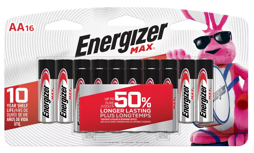 16-pack of Energizer MAX alkaline AA batteries; batteries for up to 2 years Bonus: Its guaranteed; Leak resistant-construction protects your devices from leakage of fully used; Non-stop energy for your non-stop familys must-have devicesthink toys flashlights wireless mice remotes and more; Up to 50% longer lasting than basic alkaline batteries AA size in demanding devices