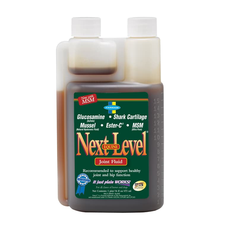 Horses are natural athletes, but their high-motion joints in weight-bearing areas are vulnerable to injury and strain when exercising. Feel confident that your horse has valuable extra support with Next Level Joint Fluid. It keeps joints lubricated and supports healthy hip and joint function.Specifications