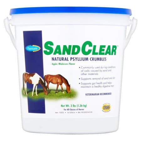 Natural Psyllium Crumbles Helps to Reduce the Risk of Digestive Colic. Help reduce the risk of digestive colic with this Natural Psyllium Crumbles. Only SandClear crumbles contain psyllium seed husk recommended by veterinarians to support the removal of sand and dirt from the ventral colon. This supplementary source of dietary fiber is ideal for horses that graze or eat off the ground.Specifications