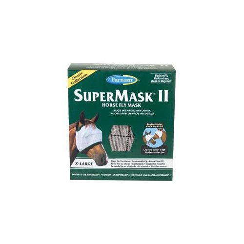 Made to last, Supermask II Horse Fly Masks are a Farnam bestseller for good reason! It protects your horse's sensitive eyes from annoying flies, dust, and debris. It also offers a comfortable design that stays in place, thanks to the unique horse-proof double-latch closure.Specifications