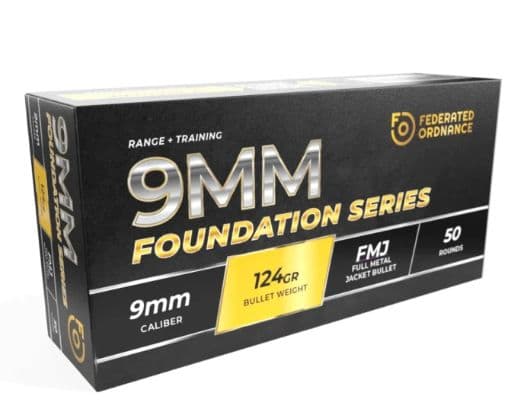 Federated Ordinance delivers on a promise of quality with the Foundation Series of components and ammunition. This 9mm 124GR Full Metal Jacket cartridge is manufactured to a true NATO spec and offers a consistent and repeatable product for your time on the range. From raw material, to manufacturing, and testing, Federated Ordnance takes the time to inspect and validate consistency at every stage of the process. Using high speed optical dimensioning and weighing systems, the foundation series of products is inspected individually at each stage of the process. Every component, every time! Maximize your shooting with the solid foundation of Federated Ordnance ammunition and components.Specifications