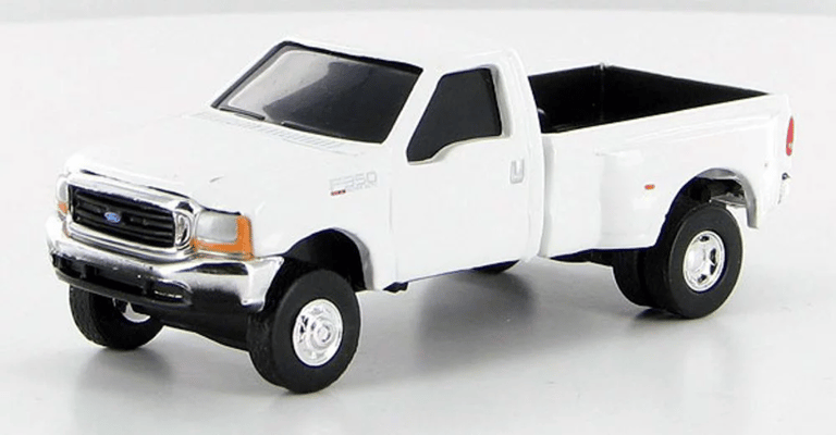 1:64 Ford F-350 Pickup Truck. Made of die-cast metal with some plastic components.