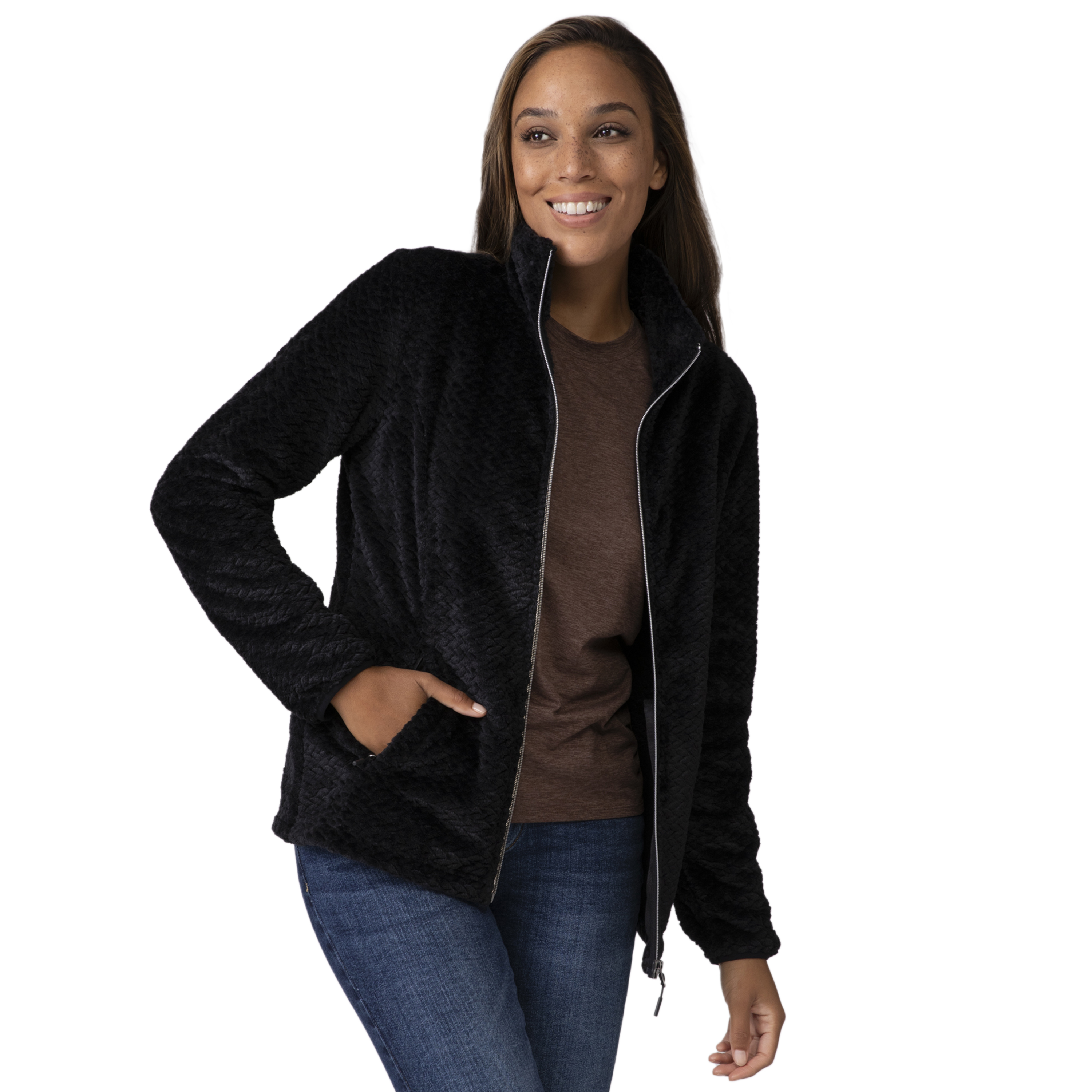 BREATHABLE; DOUBLE FACED SUPER SOFT TEXTURED BUTTER PILE; LYCRA BINDING AT CUFFS; MACHINE WASHABLE; SECURE ZIPPER POCKETS; SILVER ACCENT ON CENTER ZIPPER; STAND COLLAR; SUPERIOR COMFORT